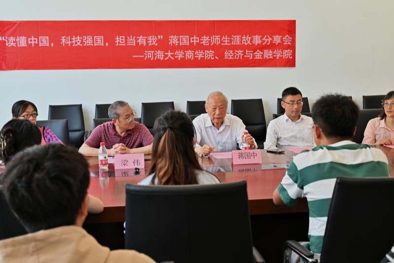 为发挥“五老”亲历者、见证者、实践者的优势,向广大青年学生讲好中国特色社会主义道路的正确性以及新时代教育事业取得的历史性成就、发生的历史性变革,教育引导广大青年学生树立坚定的理想信念,商学院、经济与金融学院关工委5月24日在常州校区33号楼104会议室举办了“读懂中国,科技强国,担当有我”蒋国中老师生涯故事分享会。学院退休教师蒋国中教授、学院关工委副主任梁伟老师、学院关工委成员潘江波老师,商学院党委副书记赵光好、团委副书记左丽,100余名学生通过线上、线下参加了本次分享会。
