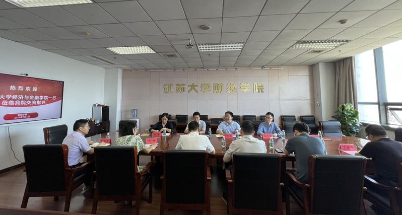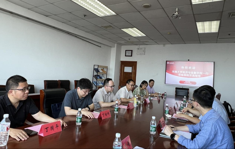 江苏大学财经学院副院长鄢军对学院一行的到来表示热烈欢迎,介绍了财经学院在师资队伍、专业设置、学生培养等方面的基本情况,并就学院创新性开展创新创业教育及学科竞赛建设的情况做了详细介绍。河海大学经济与金融学院副院长田贵良对江苏大学财经学院表示衷心感谢,介绍了河海大学经济与金融学院的发展历程、学科建设、专业设置、人才培养等情况,并对江苏大学财经学院在学科竞赛方面的丰硕成果表示赞赏,希望双方加强在创新创业教育方面的交流。