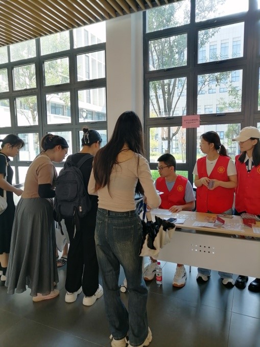 上午9点,报到大厅宽敞明亮,工作人员严阵以待。前来报到的2024级研究生新生感受着来自志愿者们的热情迎接,聆听着学长学姐的亲切介绍,在报到点依次排队,有序进行证件核查、扫码报到和资料领取。