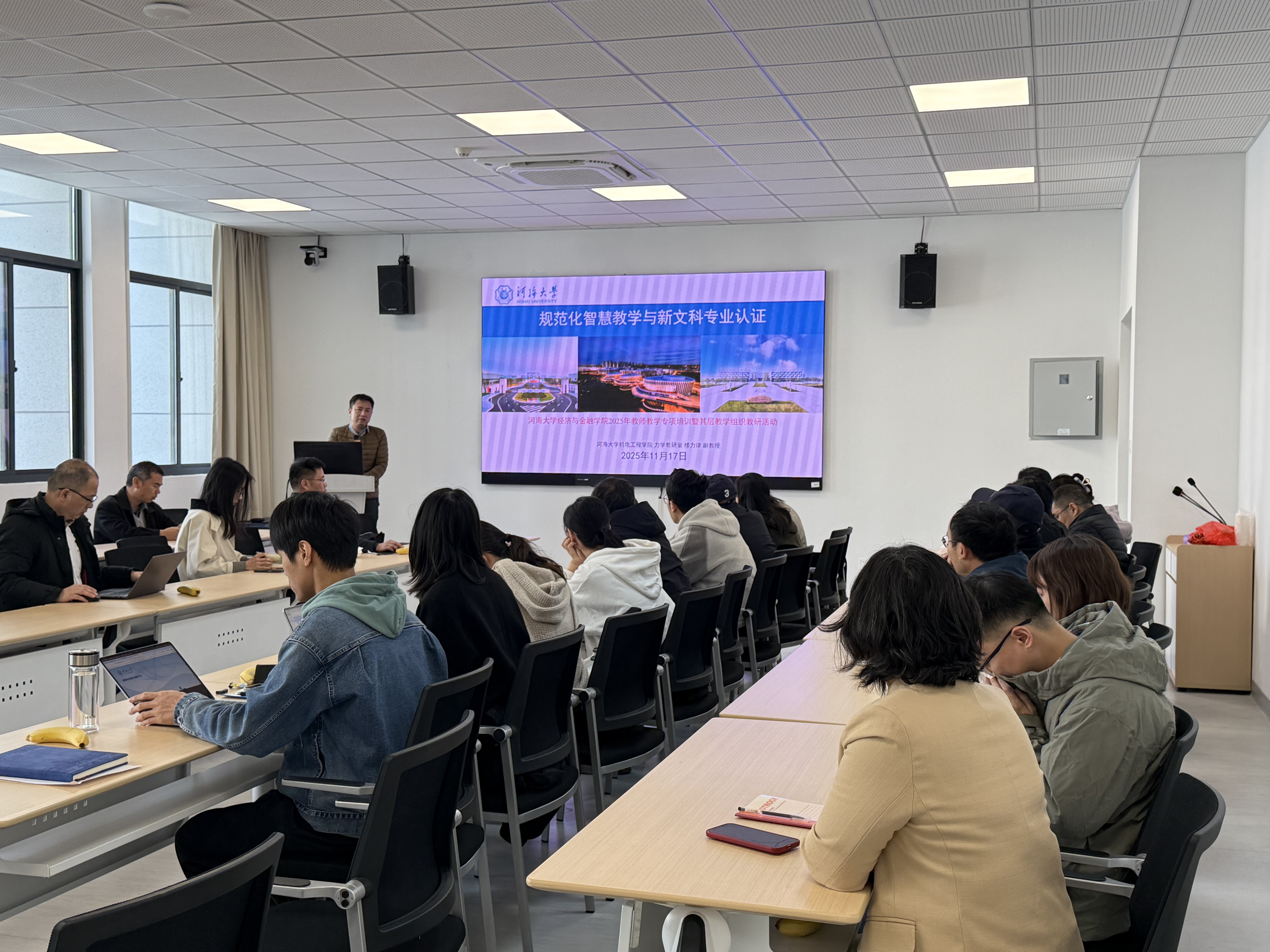 11月18日,经济与金融学院2025年教师教学专项培训暨基层教学组织教研活动在33号楼304会议室举行。本次活动以规范化智慧教学与新文科专业认证为主题,邀请河海大学优秀主讲教师、机电工程学院楼力律副教授主讲。活动由学院副院长李祎雯主持,国贸系、经济系及金融系近三十位教师参加,共同聚焦人工智能赋能教学这一前沿领域及新文科认证问题。