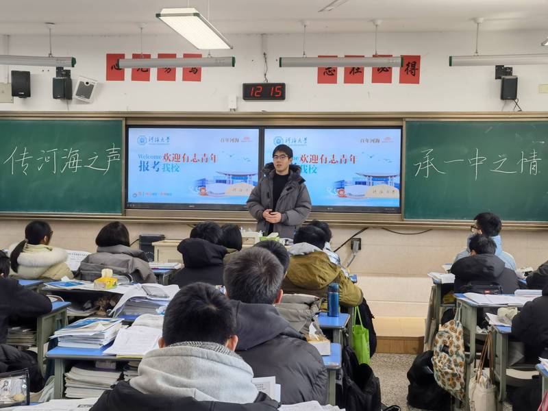 2024年2月3日,河海大学“南河启梦海韵传承”宣讲队在母校石家庄二中进行了一场精彩纷呈的宣讲活动。这次宣讲旨在向学弟学妹们分享自己的大学经验和成长心得,同时展示并河海大学的优势与特色。发扬河海精神、领悟河海底蕴、践行河海使命,每个水之子义不容辞。