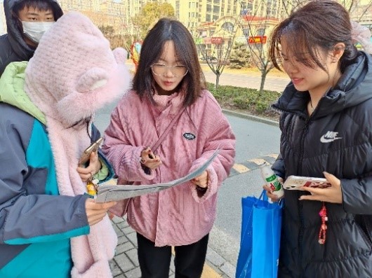 实践团成员走出校门宣传
