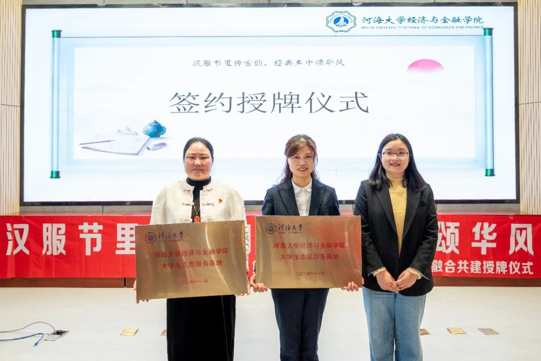 11月30日,经济与金融学院在常州校区33号楼101报告厅举办“汉服节里传古韵,经典声中颂华风”第八届中华经典诵读大赛暨校地融合三方共建签约仪式。金坛区西城街道朱庄社区主任丁香云、金坛区汉服文化协会会长姚海霞、经济与金融学院团委书记亓文娟、机电工程学院辅导员刘得存出席本次活动并担任中华经典诵读大赛评委。