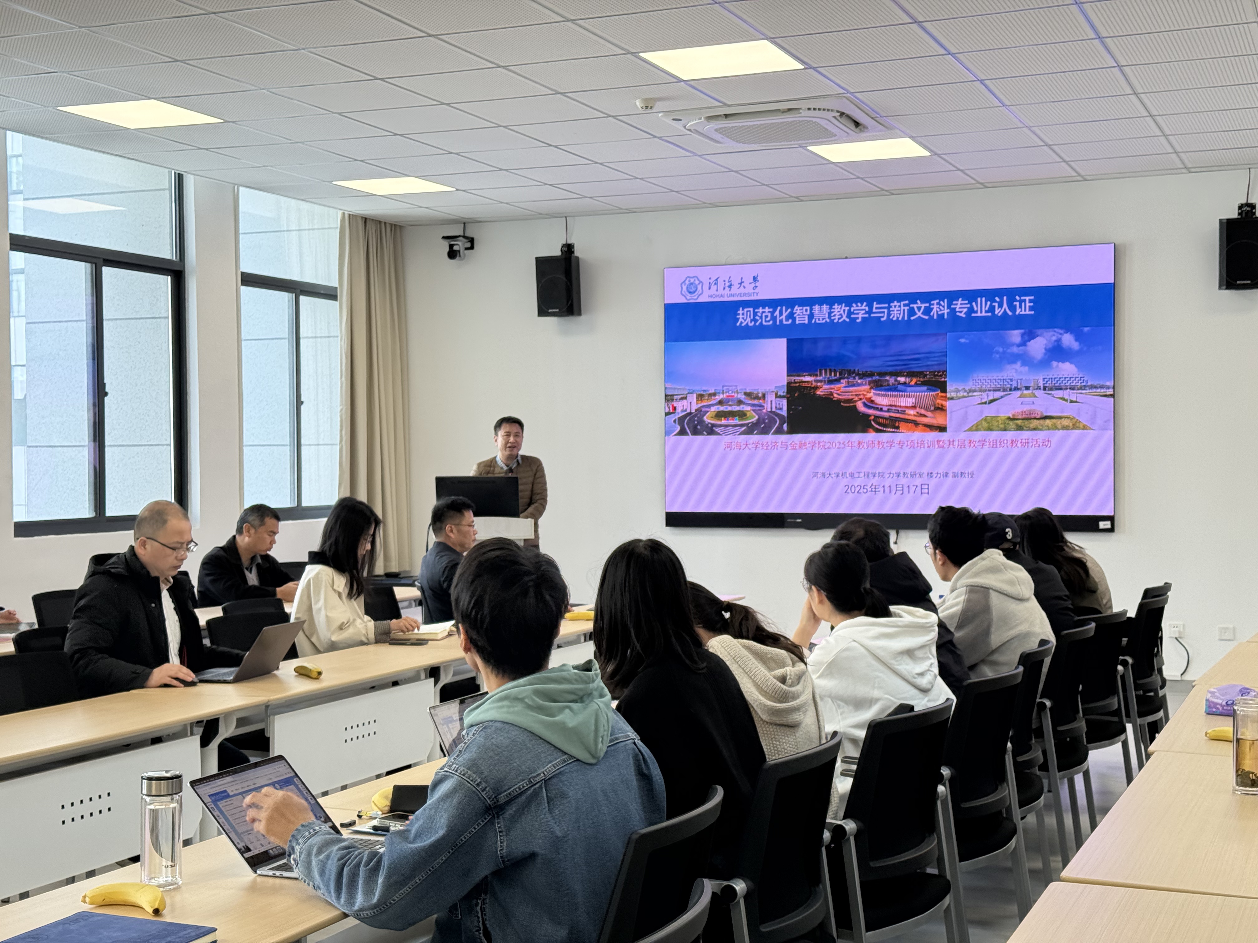 11月18日,经济与金融学院2025年教师教学专项培训暨基层教学组织教研活动在33号楼304会议室举行。本次活动以规范化智慧教学与新文科专业认证为主题,邀请河海大学优秀主讲教师、机电工程学院楼力律副教授主讲。活动由学院副院长李祎雯主持,国贸系、经济系及金融系近三十位教师参加,共同聚焦人工智能赋能教学这一前沿领域及新文科认证问题。